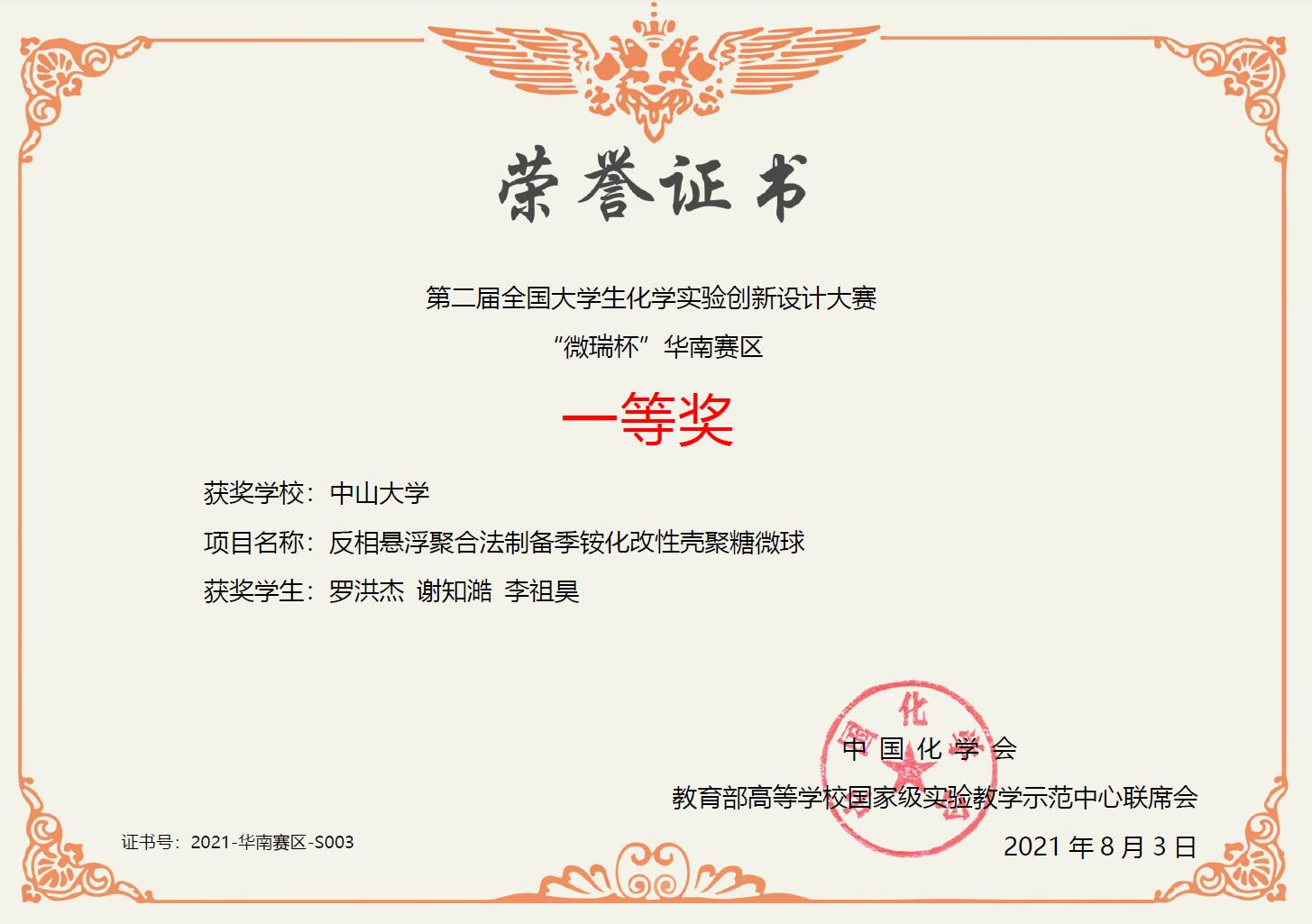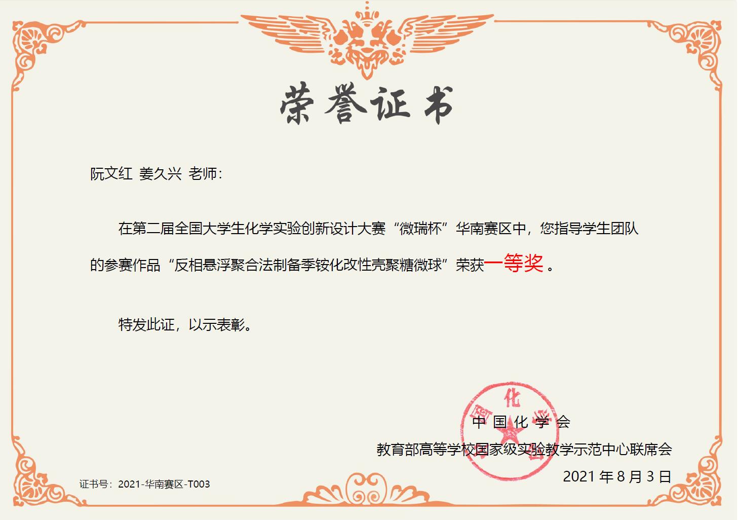 摘要:以氯化缩水甘油基三甲基铵和壳聚糖为原料,在80 °C条件下反应制备壳聚糖季铵盐。将上述所得产物溶于醋酸水溶液,并用液体石蜡和Span-80常温下进行乳化,以戊二醛为交联剂,在pH = 9~10、40 °C条件下反应制备季铵化改性壳聚糖交联微球。最终产物的结构和形貌通过傅立叶变换红外吸收光谱(FTIR)和扫描电子显微镜(SEM)进行表征。同时,将所得产物应用至甲基橙的平衡吸附实验中,检验产物的吸附性质。该方法是反相悬浮聚合反应的创新应用,具有操作简单、重复性好等特点,制得的产物具有良好的水溶性、吸附性、絮凝性和抗菌性等性能,在食品、纺织、环境、医药等领域具有广泛的应用。