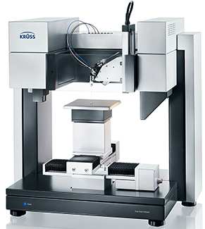 测量溶液表面张力、测量样品表面液滴的接触角,可通过多种方法计算表面张力、表面自由能及其组成(包括极性力和色散力)。