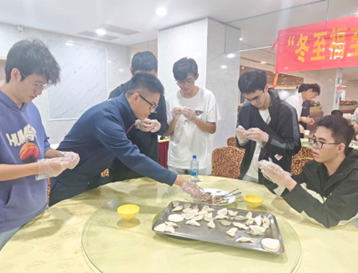 举办了“冬至福至,情暖之至”冬至包饺子活动,师生相聚在东校园五饭和南校园松涛园,一起包饺子共度冬至。学院党委冯双书记,谭海燕副书记共约300名师生参与了此次冬至包饺子活动。