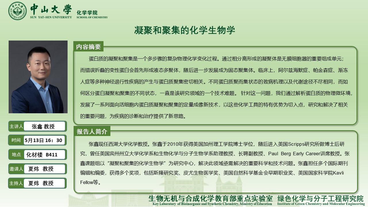 2025年05月13日讲座论坛:凝聚和聚集的化学生物学