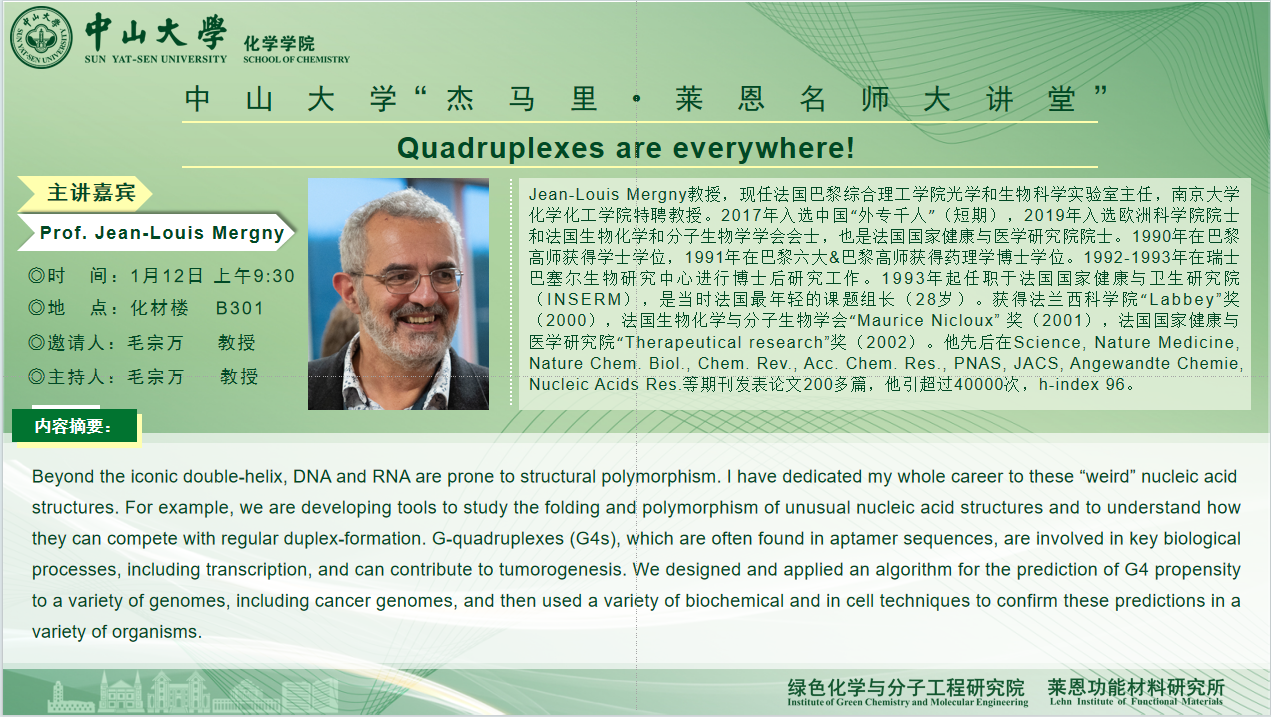 导航痕迹 swag色情 科学研究 学术报告 2026年1月12日讲座论坛:Quadruplexes are everywhere! 2026年1月12日讲座论坛:Quadruplexes are everywhere! 发布日期:2026-01-08