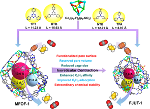Zhang, Lei;* Xiao, Taotao; Zeng, Xiayun; You, Jianjun; He, Ziyu; Chen, Cheng-Xia;* Wang, Qianting; Nafady, Ayman; Al-Enizi, Abdullah M.; Ma, Shengqian;* Isoreticular Contraction of Cage-like Metal-Organic Frameworks with Optimized Pore Space for Enhanced C2H2/CO2 and C2H2/C2H4 Separations, J. Am. Chem. Soc.2024, 146, 7341-7351. ESI高被引DOI: 10.1021/jacs.3c12032